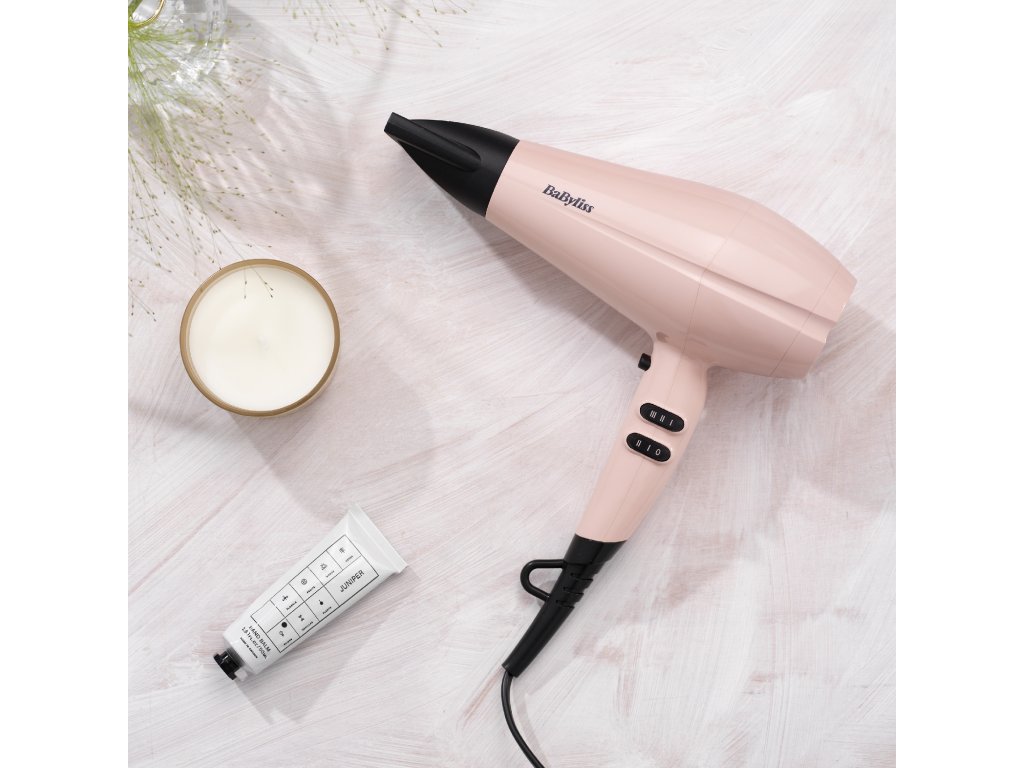 Štýl a výkon. Ružový fén Rose Blush 2200 sa pýši výkonom 2200 W, 3 nastaveniami teploty, 2 nastaveniami rýchlosti prúdenia vzduchu, tlačidlom studeného vzduchu, funkciou ionizácie proti poletovaniu a krepateniu vlasov, výkonným HTDC motorom a nízkou hmotnosťou pre pohodlnú manipuláciu. V balení s koncentrátorom.