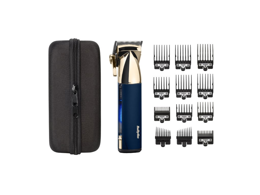 Luxusný zastrihávač fúzov s čepeľami o šírke 45 mm z japonskej grafitovej ocele. Možnosť sieťovej aj bezdrôtovej prevádzky (aý 180 minút). Rýchle nabitie za 3 hod, 11 nastavení dĺžok (1,5-25 mm). V luxusnom zlato-modrom dizajne.