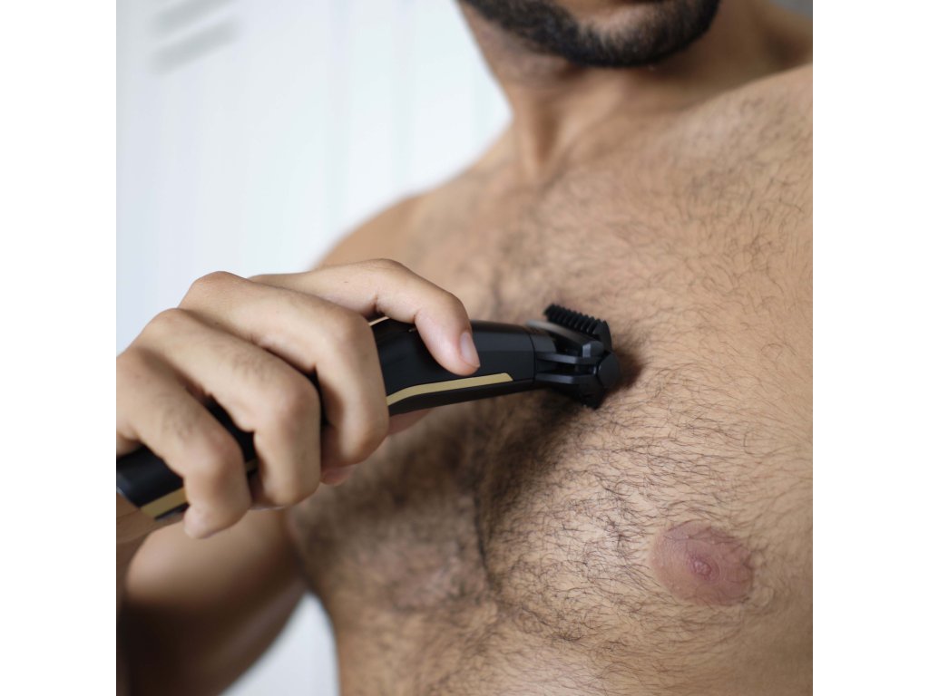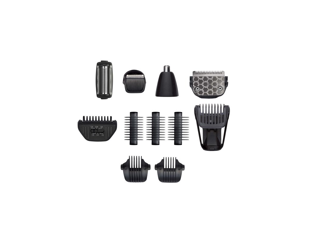Vysoko výkonný multifunkčný zastrihávač tváre a tela na úpravu a tvarovanie chĺpkov na tvári a tele. Ideálne na udržanie úhľadného strniska alebo fúzov, zastrihovanie kotliet, úpravu obočia, odstránenie chĺpkov v nose a ušiach alebo úpravu a tvarovanie chĺpkov na tele. S uhlíkovo-titánovými čepeľami pre hladký strih a dlhotrvajúcu presnosť. Až 70 minút bezdrôtového použitia. 100% vodotesný - je možné použiť za mokra alebo za sucha a naozaj ľahko sa čistí.