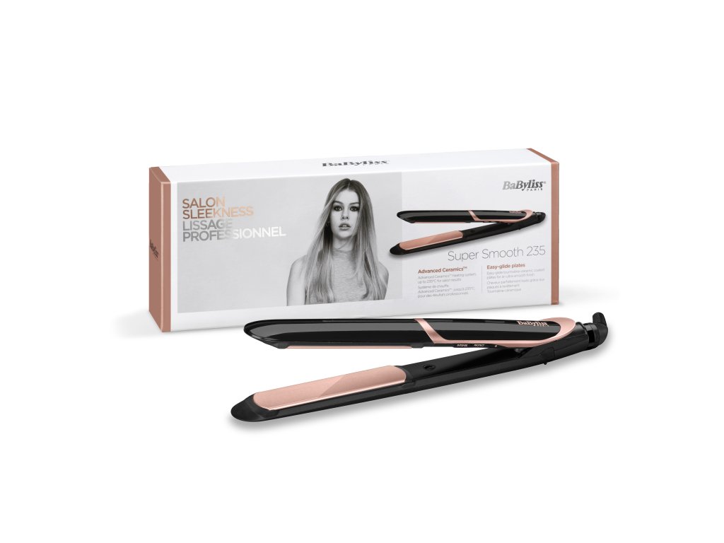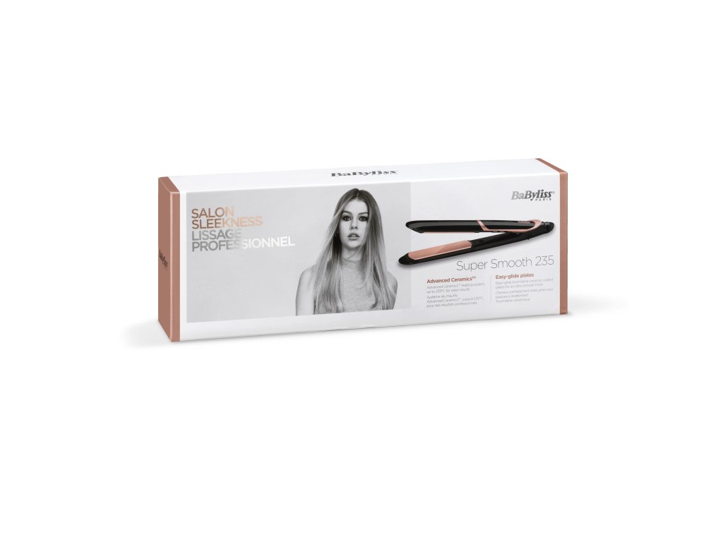 Žehlička na vlasy Super Smooth 235 s teplotou až 235 ° C a šírkou doštičiek 24mm. S odolnými turmalín-keramickými doštičkami a 6 digitálnymi nastaveniami teploty. S funkciou ionizácie a rýchlym nahriatím už za 30 sekúnd. V balení s odkladacou teplovzdornou podložkou pre bezpečnú manipuláciu.
