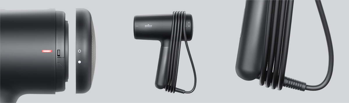 LED indikátor vám oznámi, kedy je potrebné vymeniteľný filter vyčistiť, čo pomáha udržiavať optimálny výkon sušiča vlasov počas celej jeho životnosti. Systém navíjania káblov umožňuje úhľadne navíjať extra dlhý napájací kábel 220 cm.