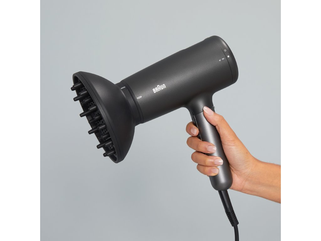Štýlový fén od Braun s príkonom 2100 W zaisťuje super rýchle vysúšanie. Vďaka pokročilej ionizačnej technológii Super IONTEC prináša vlasom oslnivý lesk a hebkosť po každom stylingu. Vďaka NTC technológii konštantne regulujúcej teplo je fénovanie skutočne šetrné. Zabudovaný LED indikátor vás upozorní na potrebu čistenia filtra, čo zjednodušuje údržbu. Špeciálny design umožňuje ľahké namotávanie kábla na telo prístroja. Menu s LED podsvietením a zámkom na zamknutie práve používaného nastavenia. V balení nájdete 10 mm koncentrátor pre presný styling a difuzér na zvýraznenie prirodzených kučier. Kábel dlhý 2,2 m poskytuje slobodu pohybu. Fén ponúka 3 nastavenia teploty a 3 nastavenia rýchlosti prúdenia vzduchu pre všetky typy vlasov.