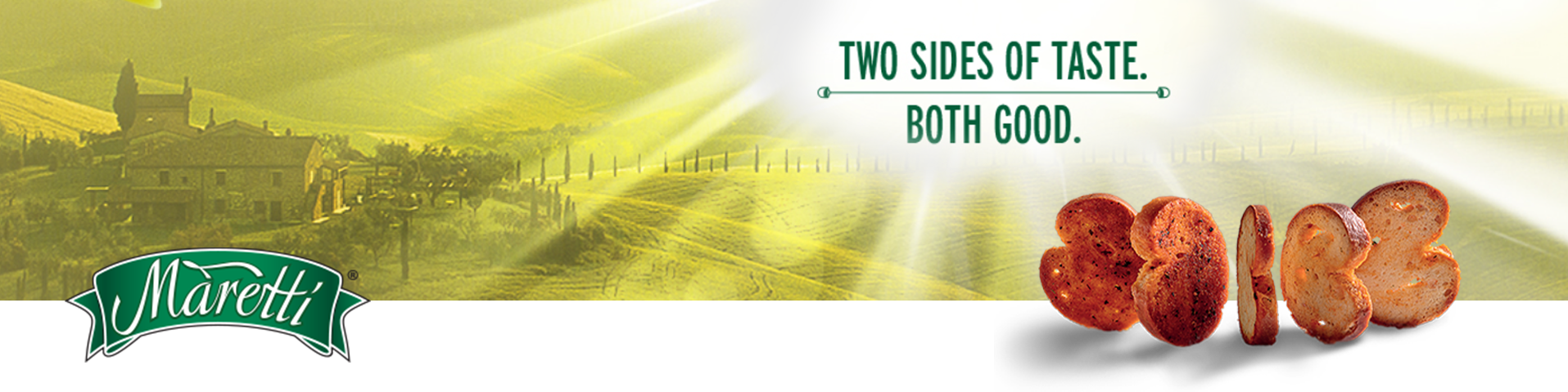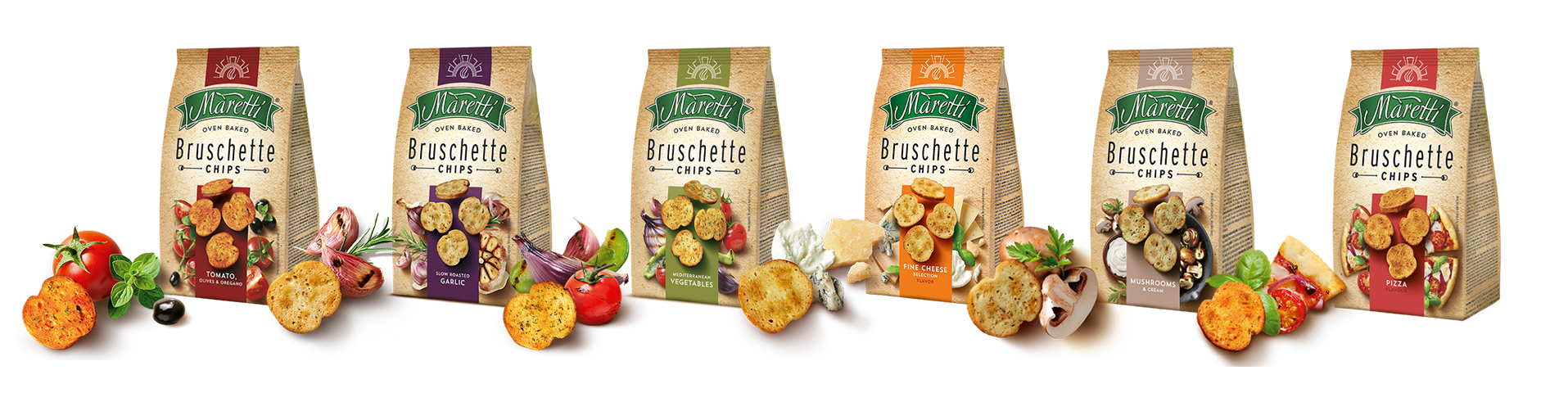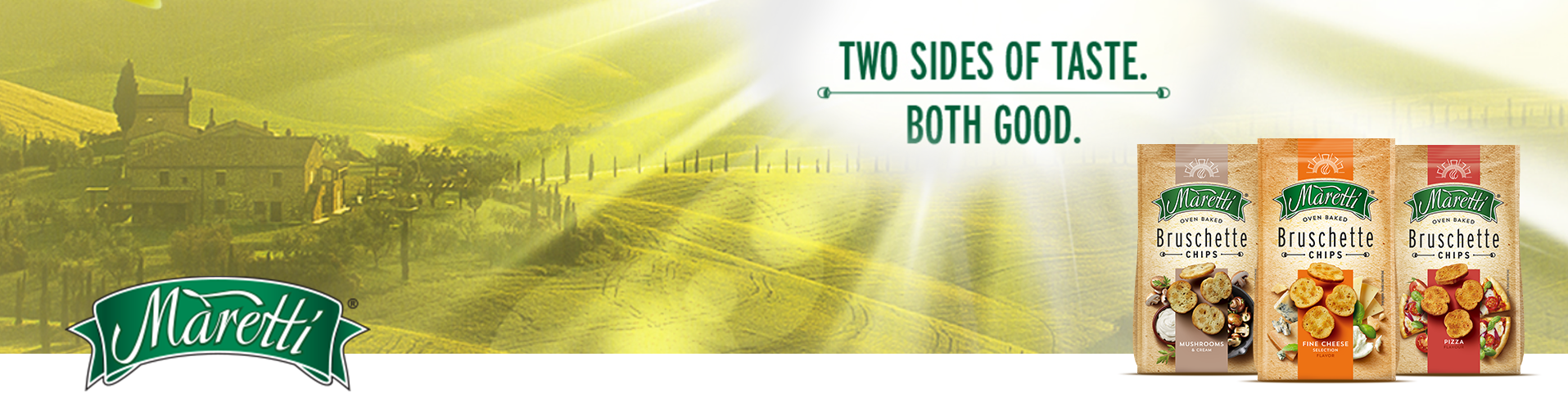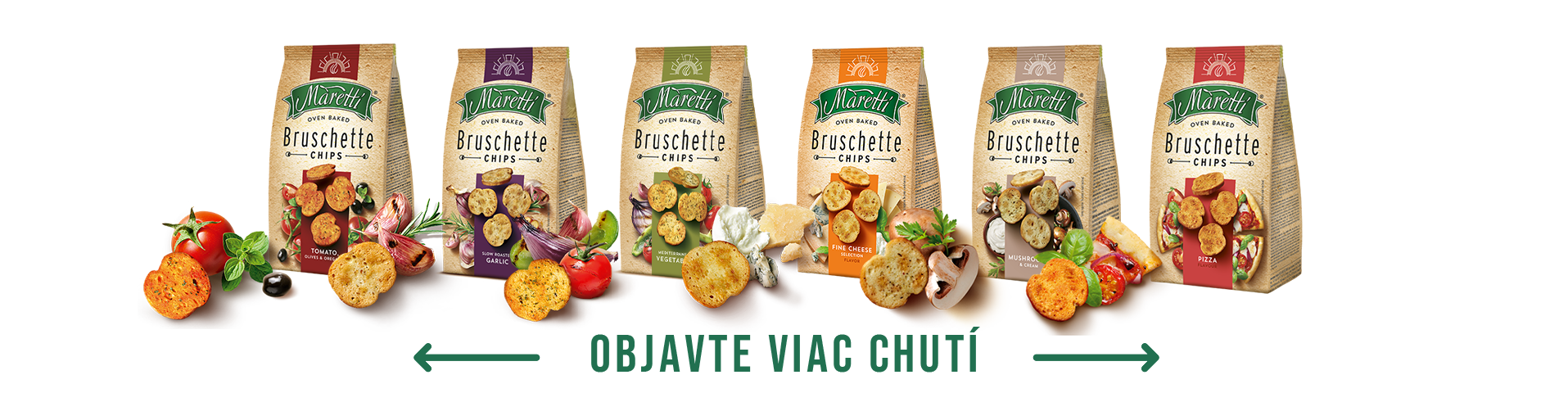 Bruschette Maretti pripravujeme v našom tradičnom štýle bruschetty. Maretti sú bohato okorenené iba z jednej strany a ponúkajú vám snack 2 v 1 s možnosťou výberu medzi intenzívnou a jemnou chuťou (menej korenia pre intenzívnu chuť alebo viac korenia pre jemnejšiu). Tak či onak, nebudete ľutovať. 😊